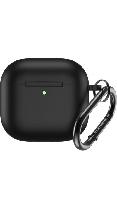 AirPods 4 Case Hülle - Silikonmatte mit Karabiner - Schwarz