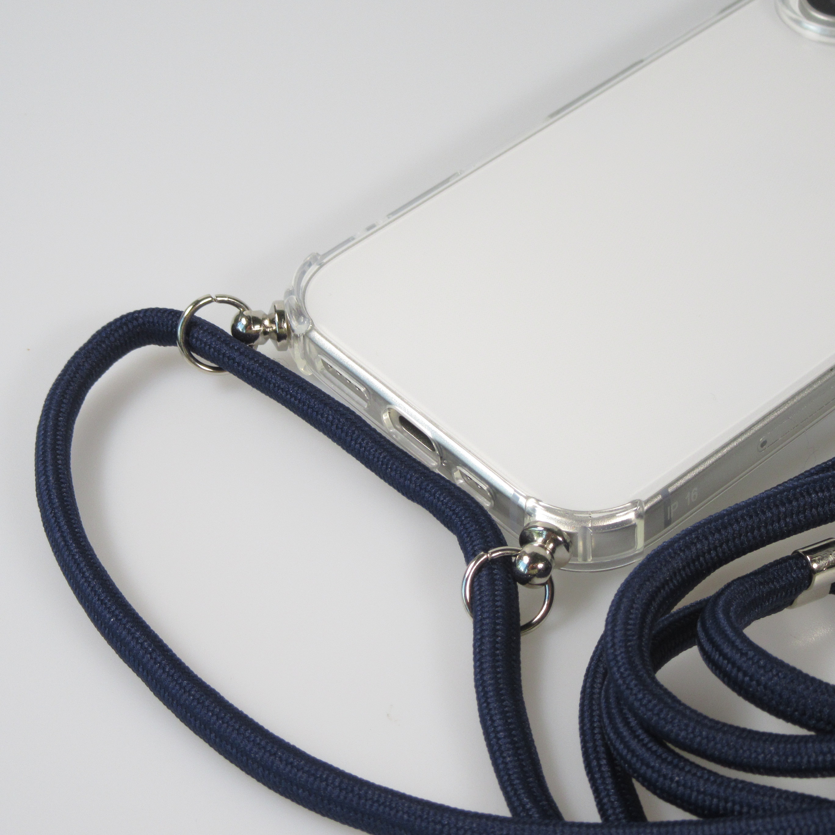Hülle iPhone 16 - Gummi transparent mit Seil blau