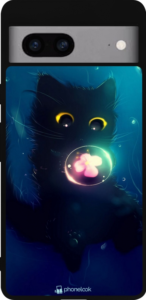 Google Pixel 7a Case Hülle - Silikon schwarz Cute Cat Bubble