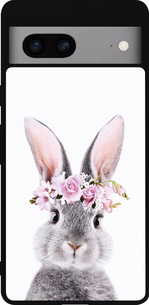 Google Pixel 7a Case Hülle - Silikon schwarz Easter 2023 flower bunny