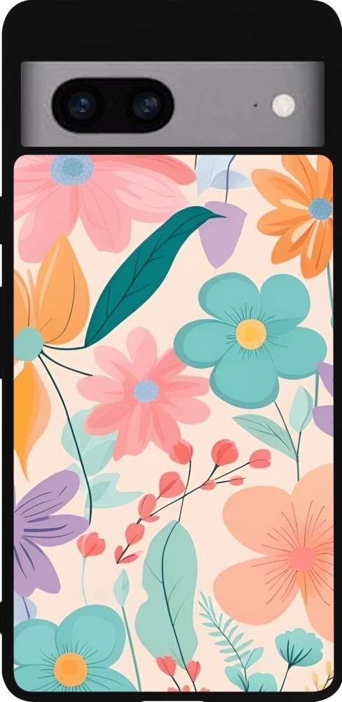 Google Pixel 7a Case Hülle - Silikon schwarz Easter 2024 spring flowers