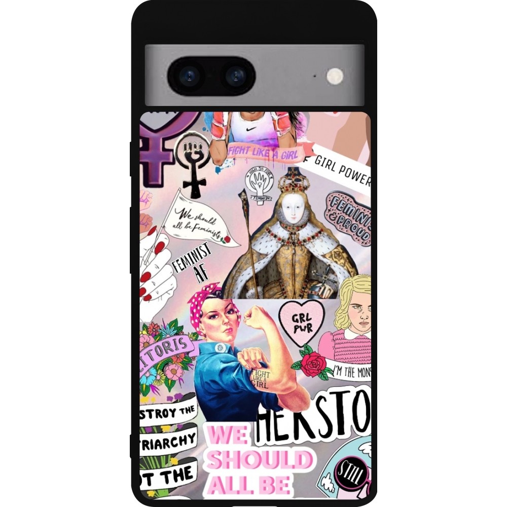 Google Pixel 7a Case Hülle - Silikon schwarz Girl Power Collage