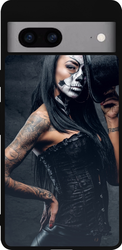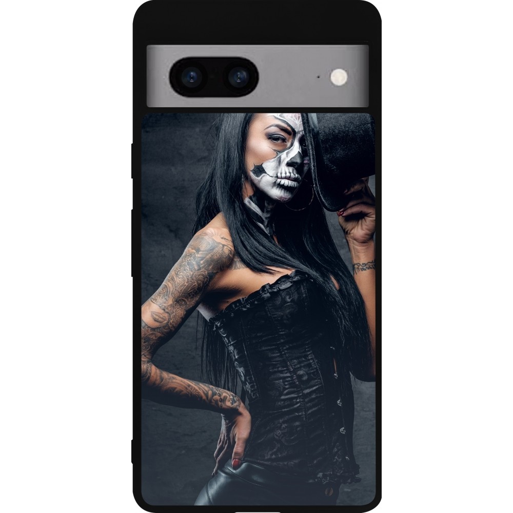 Google Pixel 7a Case Hülle - Silikon schwarz Halloween 22 Tattooed Girl