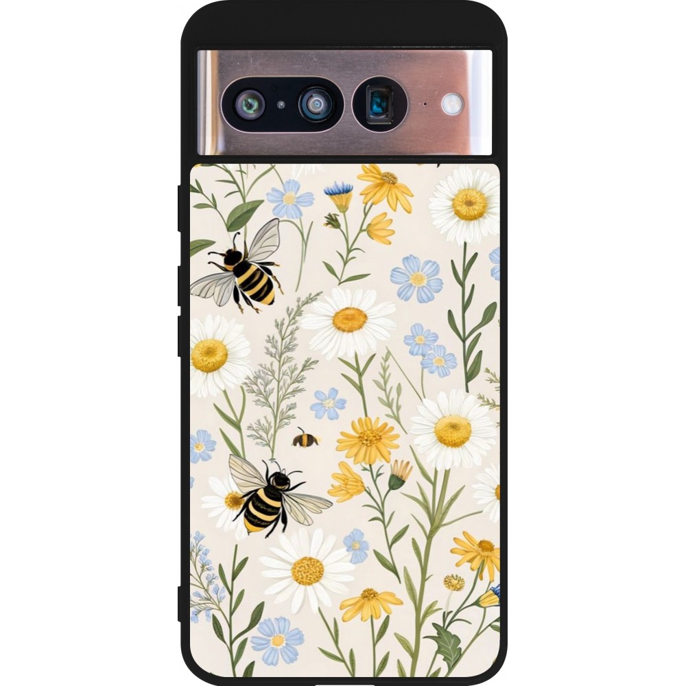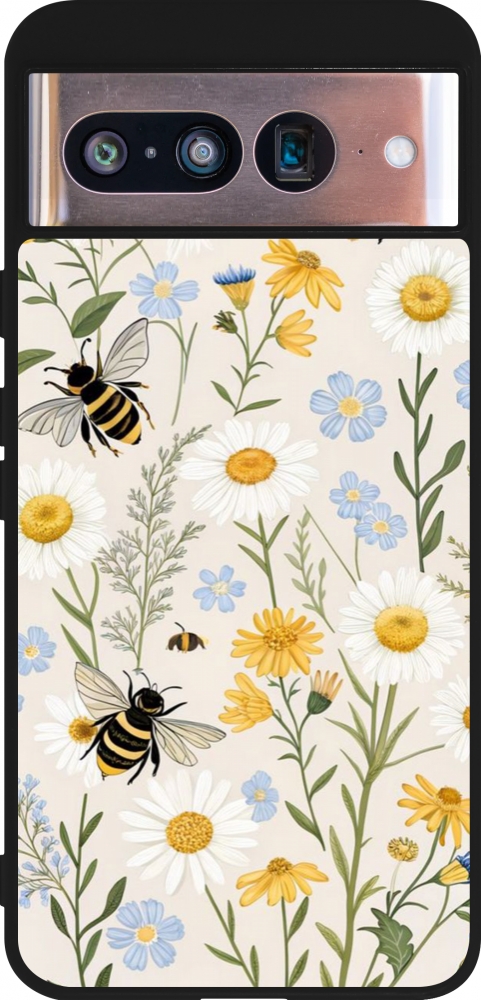 Google Pixel 8 Case Hülle - Silikon schwarz Pattern bees Spring 2026