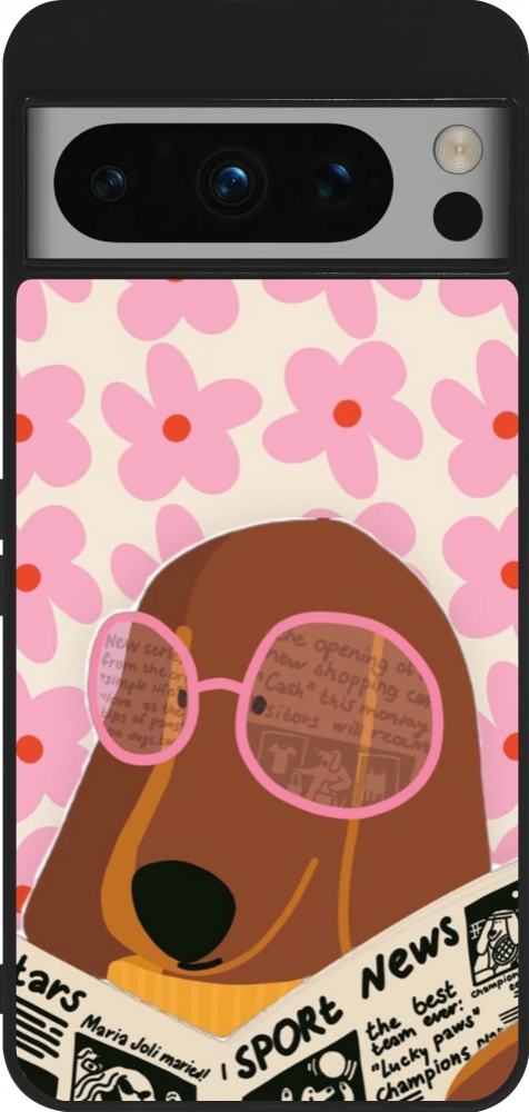 Google Pixel 8 Pro Case Hülle - Silikon schwarz Dog with newspaper Spring 2026