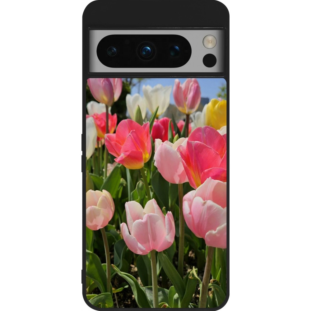 Google Pixel 8 Pro Case Hülle - Silikon schwarz Tulips Spring 2026
