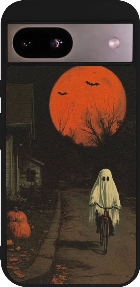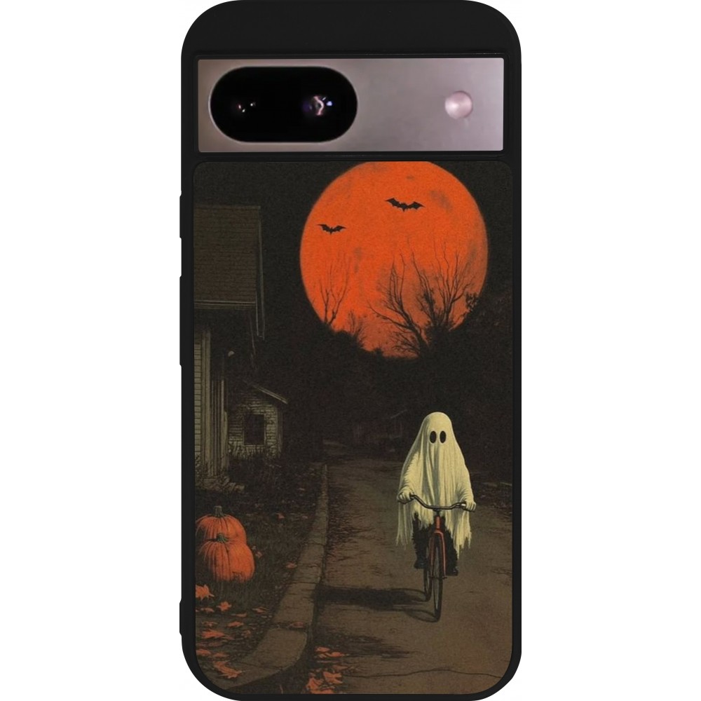 Google Pixel 8a Case Hülle - Silikon schwarz Halloween 2025 Ghost on a bicycle