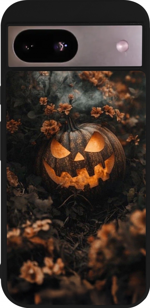 Google Pixel 8a Case Hülle - Silikon schwarz Halloween 2025 Pumpkin with flowers