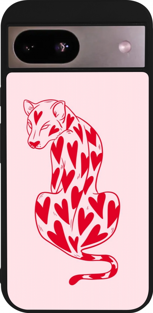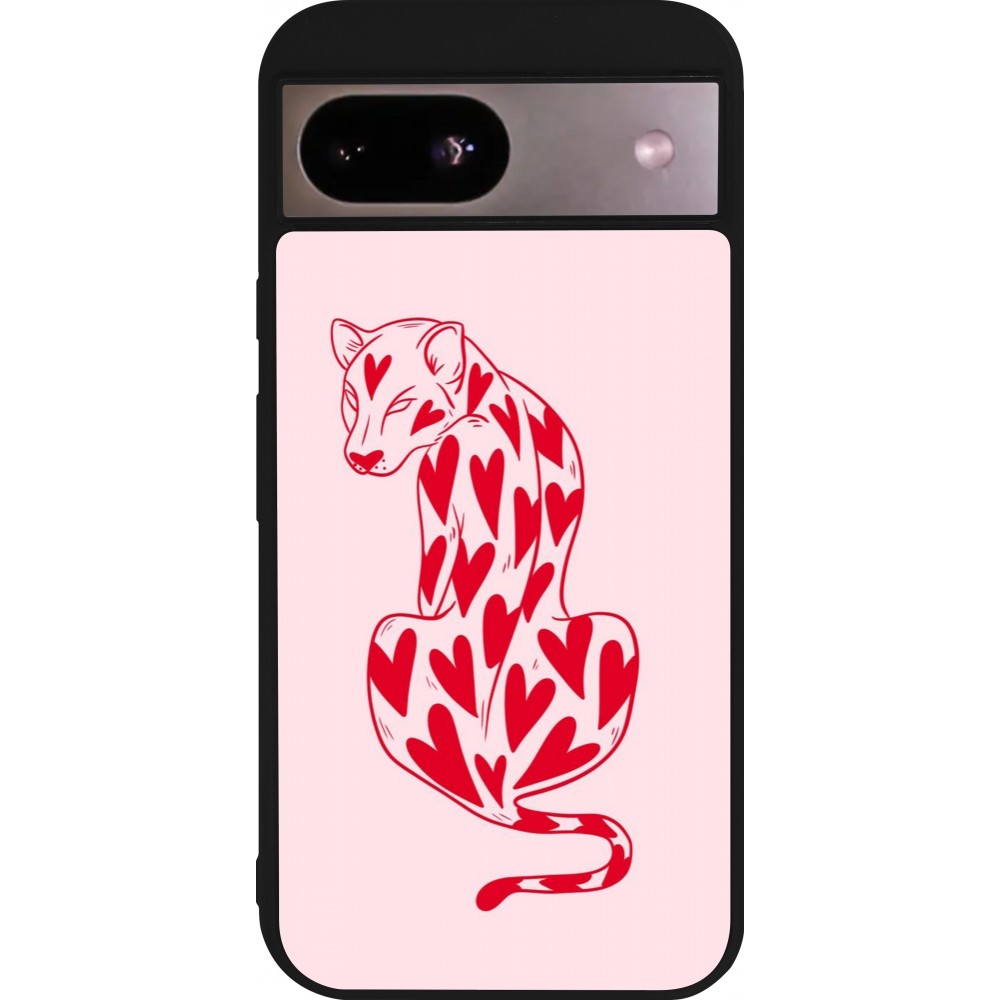 Google Pixel 8a Case Hülle - Silikon schwarz Leopard with hearts 2026