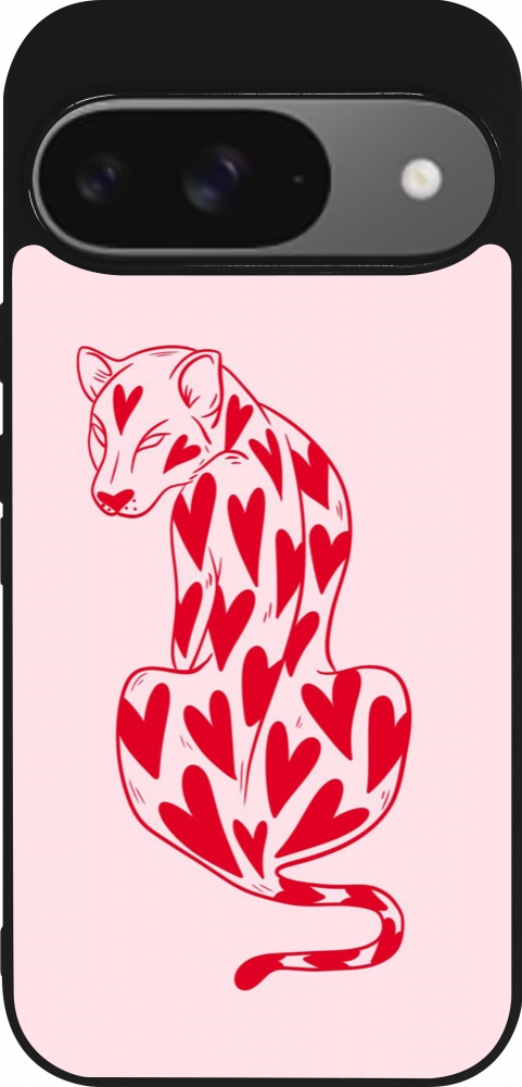 Google Pixel 9 / Pixel 9 Pro Case Hülle - Silikon schwarz Leopard with hearts 2026