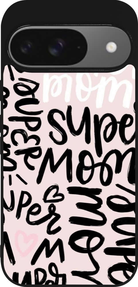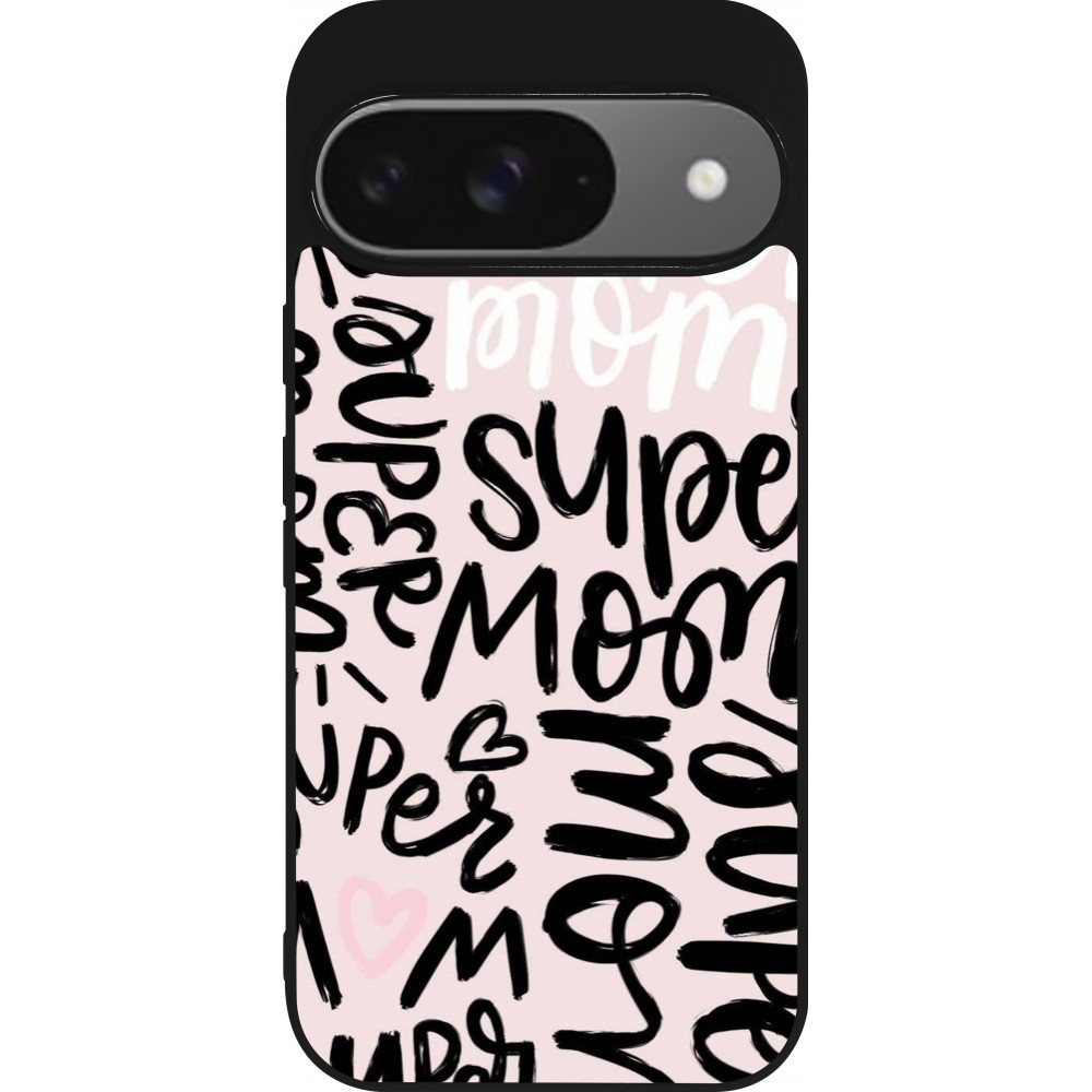 Google Pixel 9 / Pixel 9 Pro Case Hülle - Silikon schwarz Mom 2024 Super mom