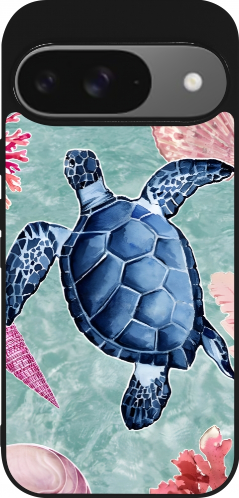 Google Pixel 9 / Pixel 9 Pro Case Hülle - Silikon schwarz Preppy Turtle