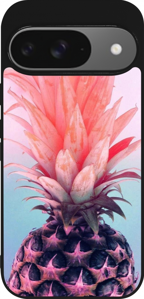 Google Pixel 9 / Pixel 9 Pro Case Hülle - Silikon schwarz Purple Pink Pineapple