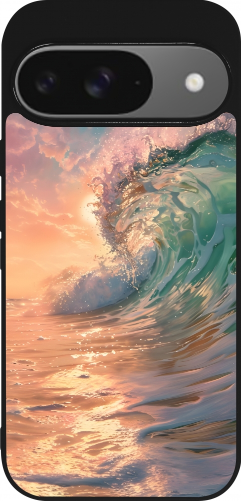 Google Pixel 9 / Pixel 9 Pro Case Hülle - Silikon schwarz Wave Sunset