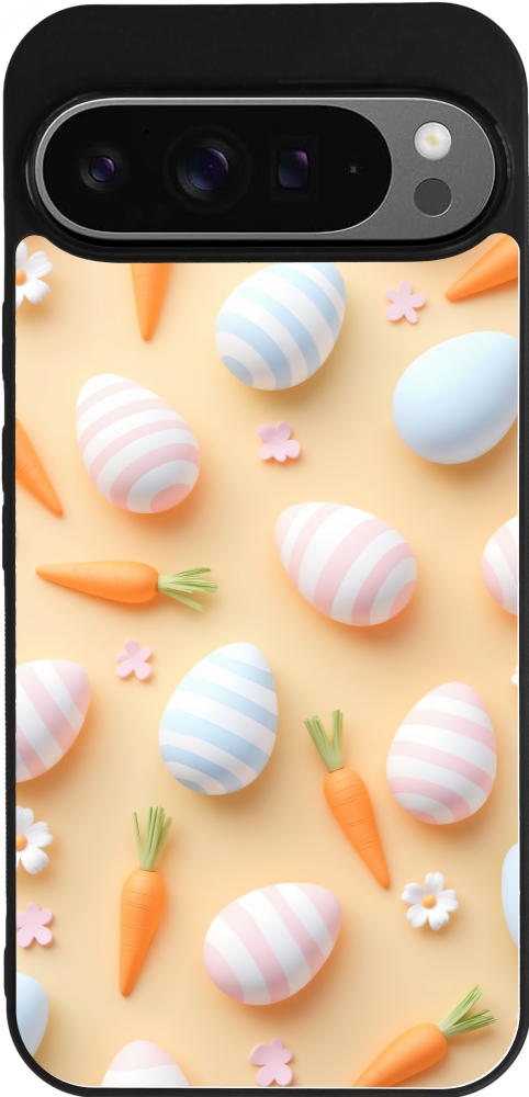 Google Pixel 9 Pro XL Case Hülle - Silikon schwarz Easter 2026 Pattern Easter
