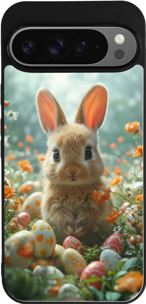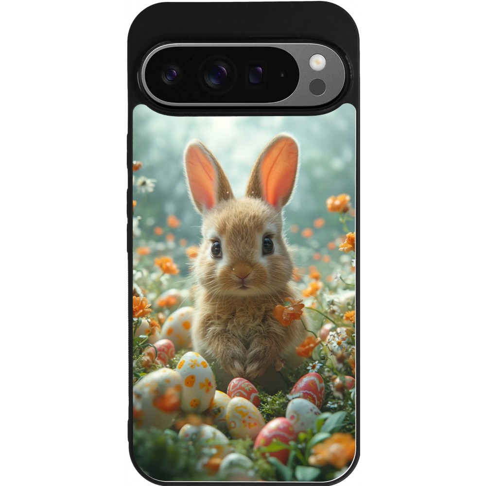 Google Pixel 9 Pro XL Case Hülle - Silikon schwarz Easter 2026 Rabbit in the garden