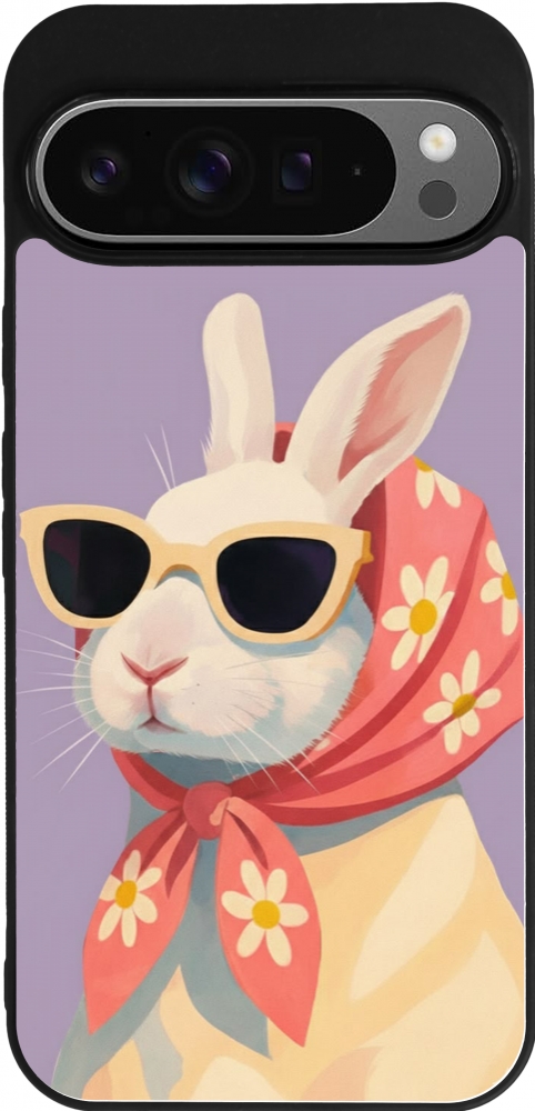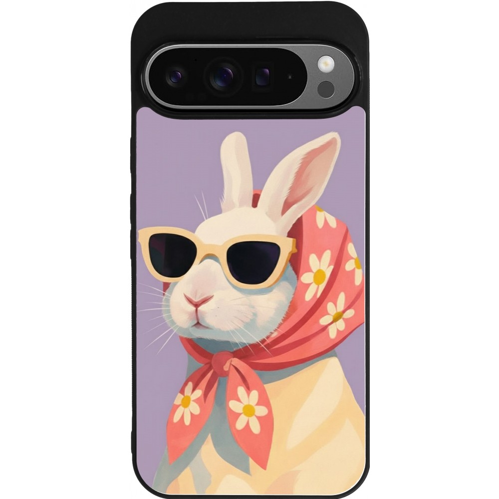 Google Pixel 9 Pro XL Case Hülle - Silikon schwarz Easter 2026 Rabbit with scarf