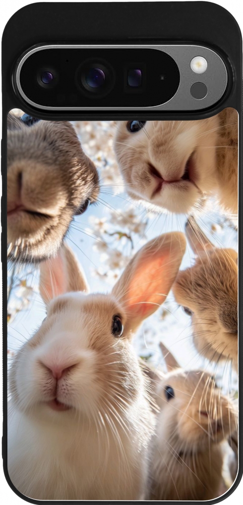 Google Pixel 9 Pro XL Case Hülle - Silikon schwarz Easter 2026 Rabbits