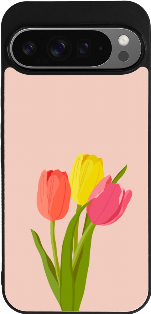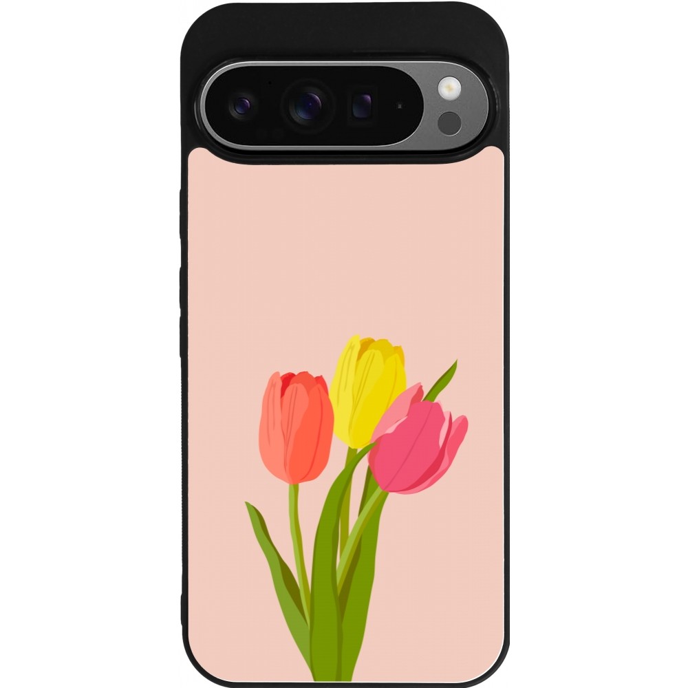 Google Pixel 9 Pro XL Case Hülle - Silikon schwarz Spring 23 tulip trio