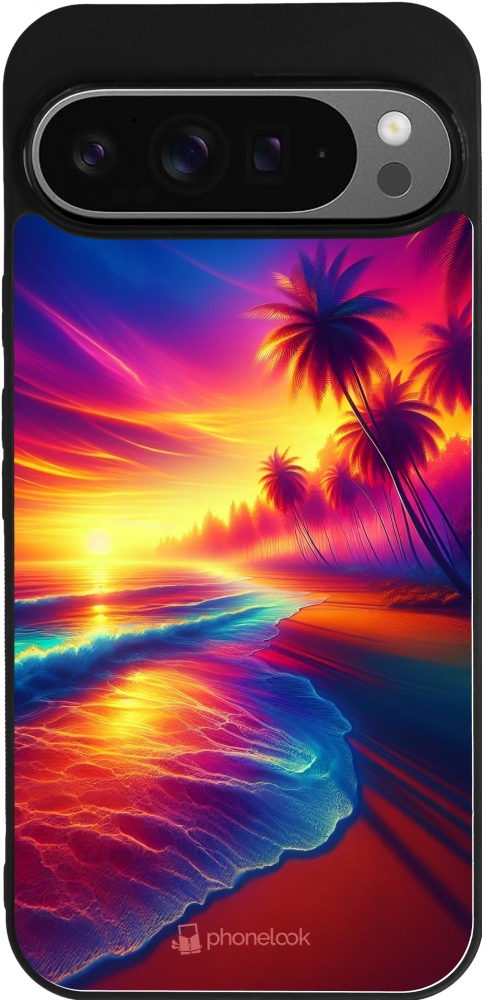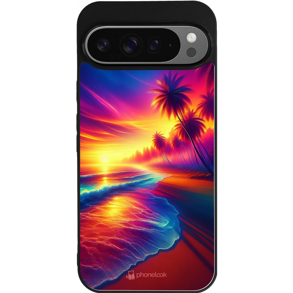 Google Pixel 9 Pro XL Case Hülle - Silikon schwarz Strand Sonnenuntergang auffällig