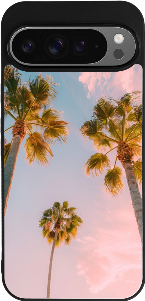 Google Pixel 9 Pro XL Case Hülle - Silikon schwarz Summer 2025 Palmiers