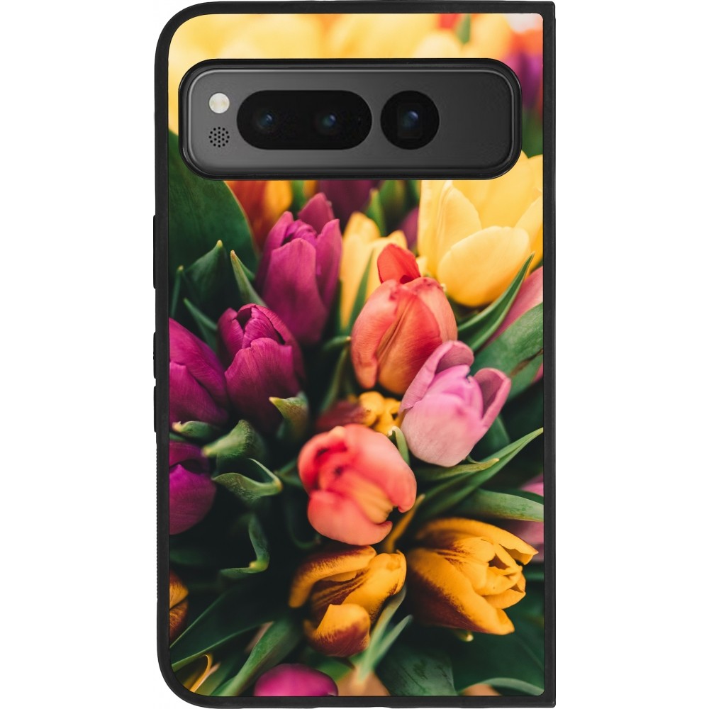 Google Pixel Fold Case Hülle - Silikon schwarz Bouquet of tulips Spring 2026