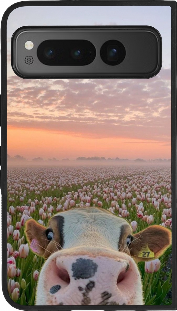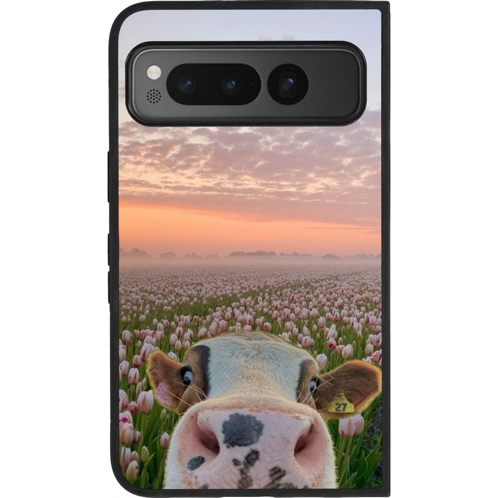 Google Pixel Fold Case Hülle - Silikon schwarz Cow with tulips Spring 2026