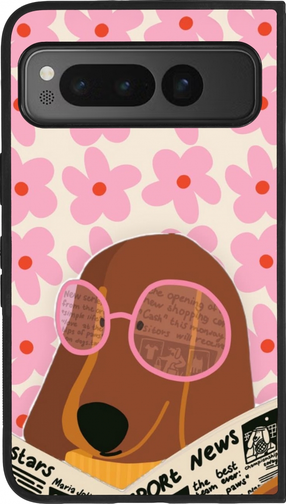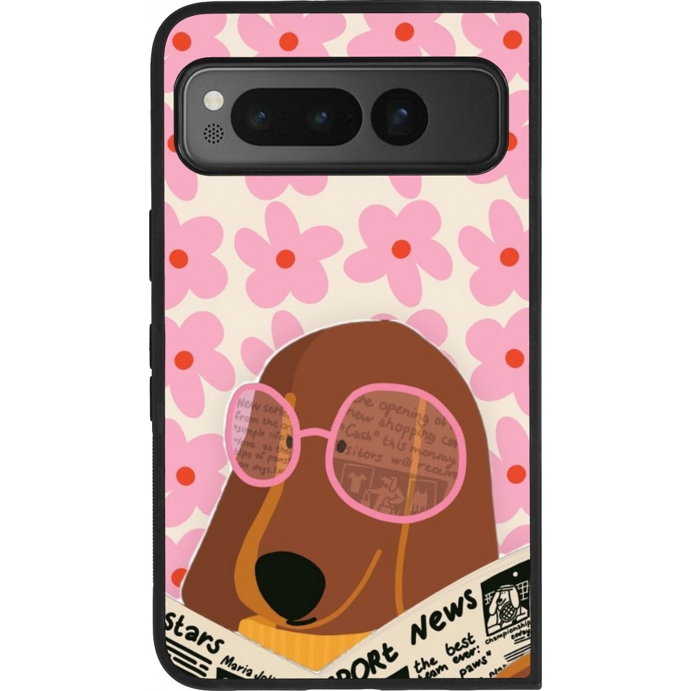 Google Pixel Fold Case Hülle - Silikon schwarz Dog with newspaper Spring 2026