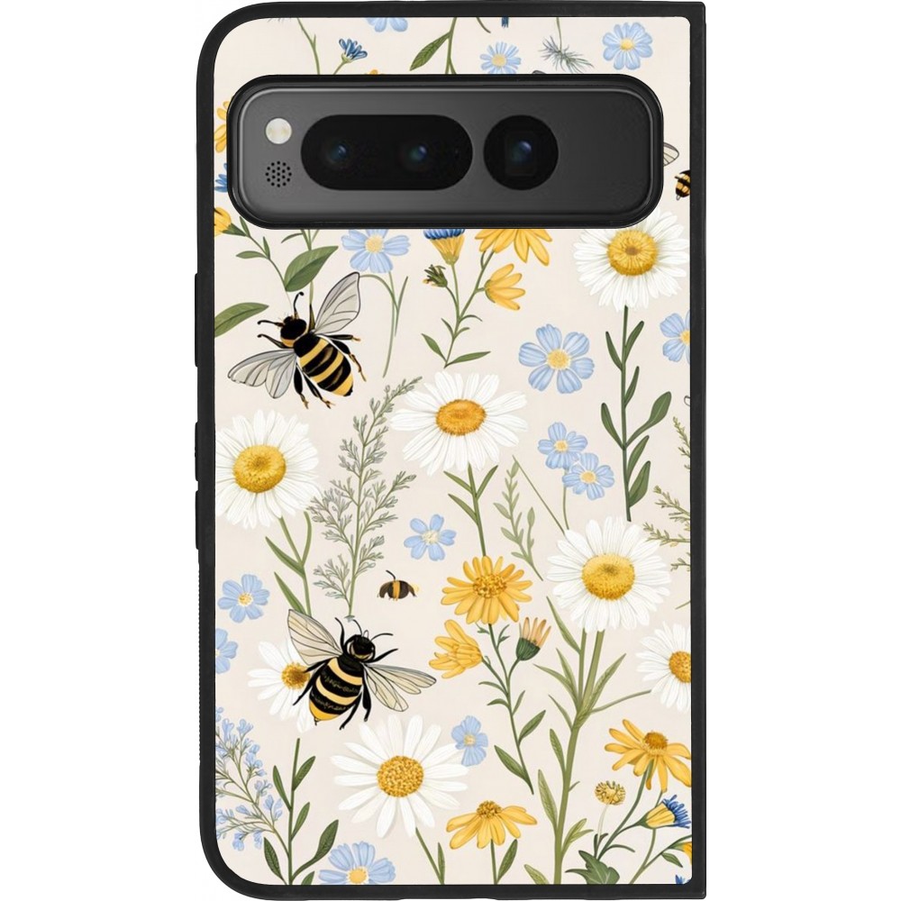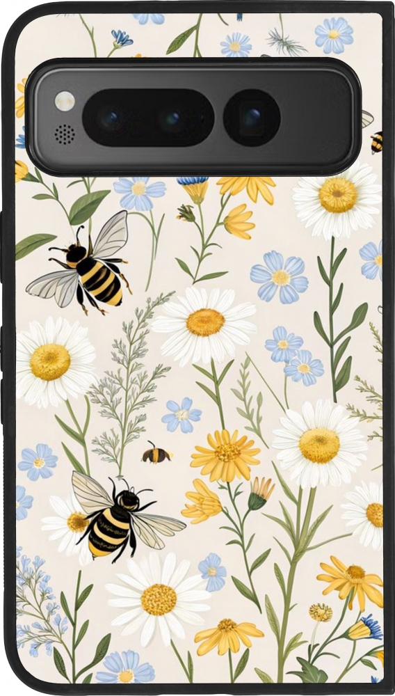 Google Pixel Fold Case Hülle - Silikon schwarz Pattern bees Spring 2026