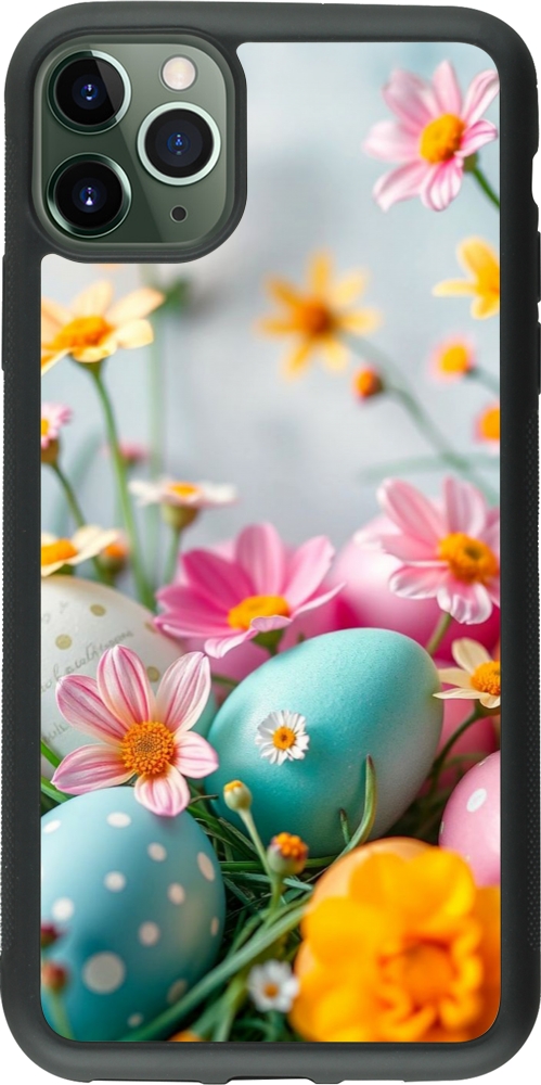 iPhone 11 Pro Max Case Hülle - Silikon schwarz Easter 2026 Eggs with flowers
