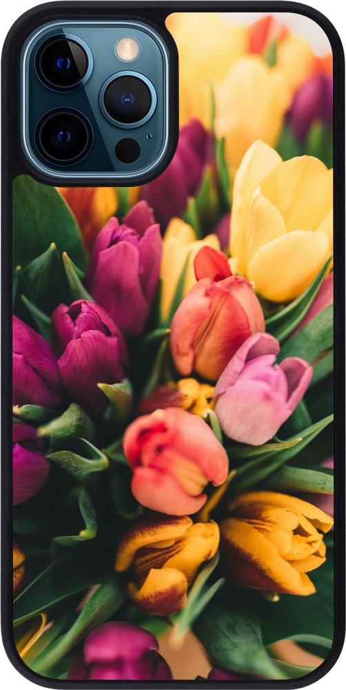iPhone 12 / 12 Pro Case Hülle - Silikon schwarz Bouquet of tulips Spring 2026