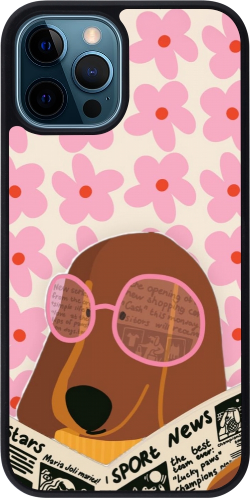 iPhone 12 / 12 Pro Case Hülle - Silikon schwarz Dog with newspaper Spring 2026