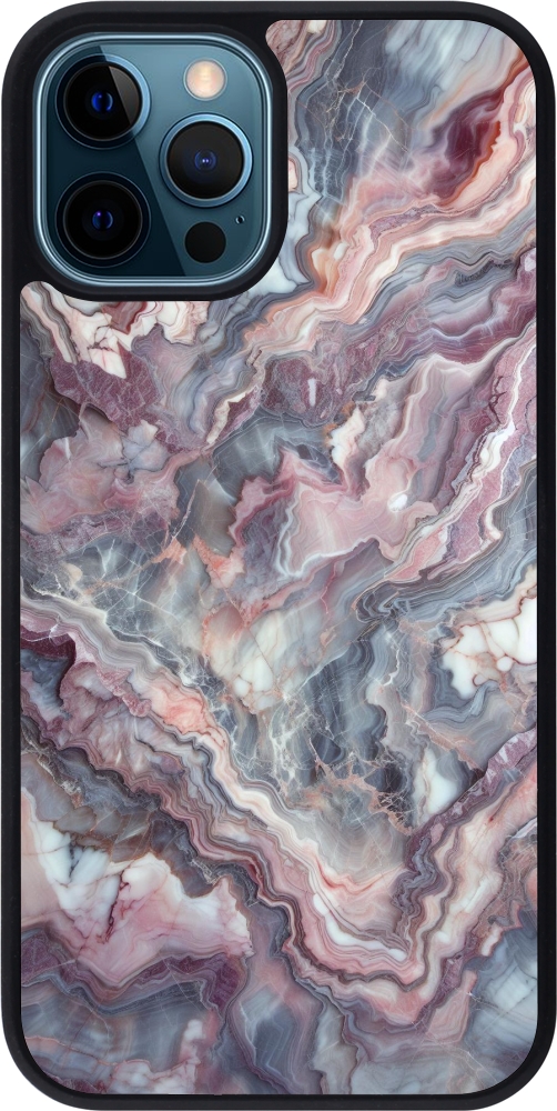 iPhone 12 / 12 Pro Case Hülle - Silikon schwarz Violetter silberner Marmor