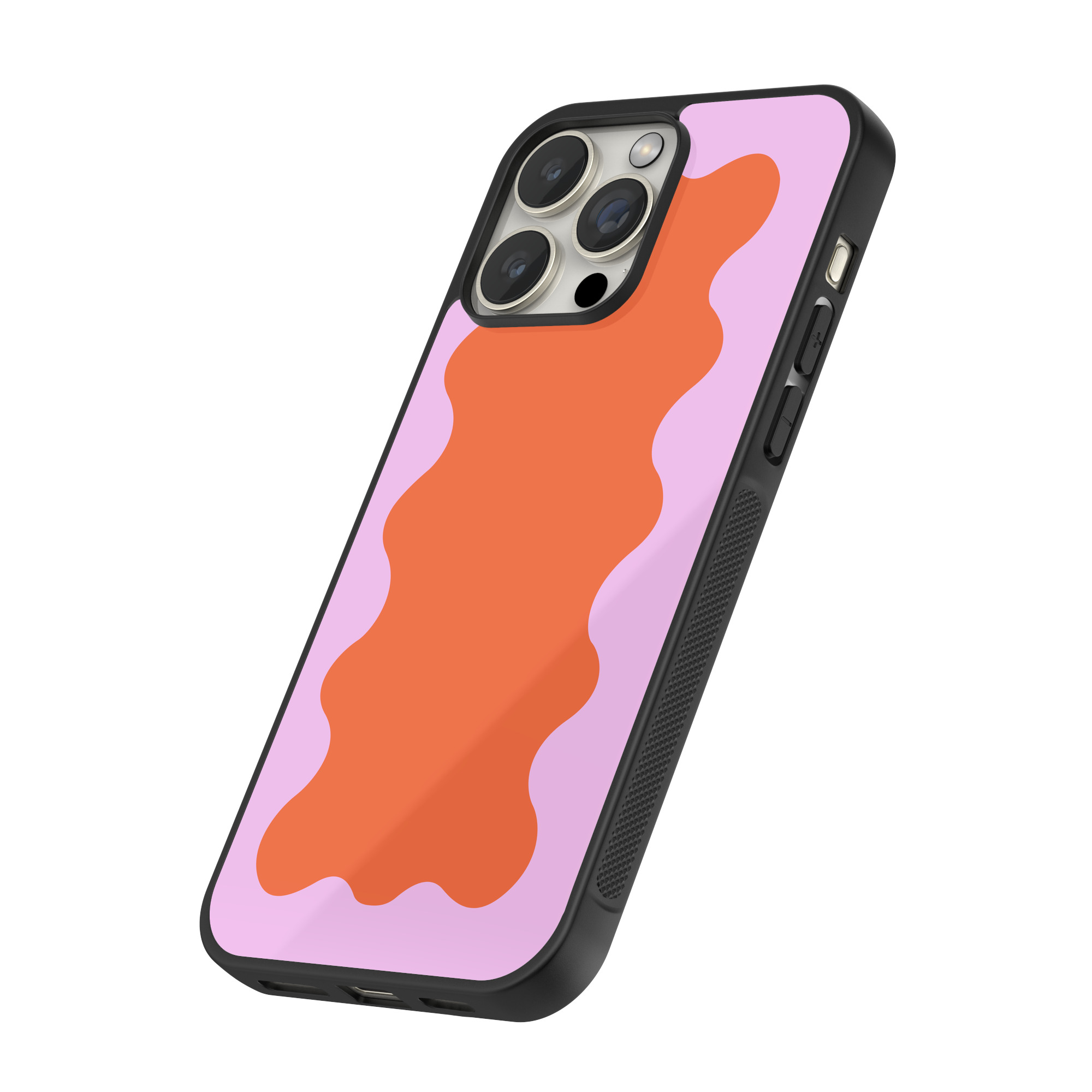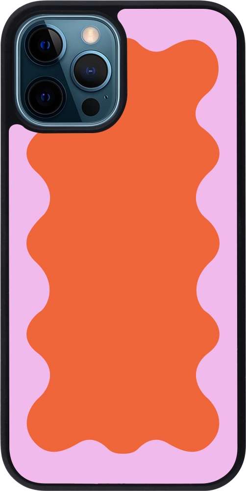 iPhone 12 / 12 Pro Case Hülle - Silikon schwarz Wavy Rectangle Orange Pink