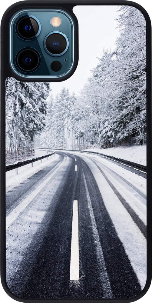 iPhone 12 / 12 Pro Case Hülle - Silikon schwarz Winter 22 Snowy Road