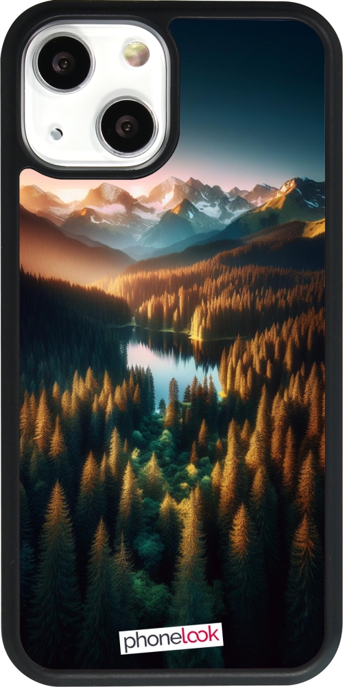 iPhone 13 mini Case Hülle - Silikon schwarz Sonnenuntergang Waldsee