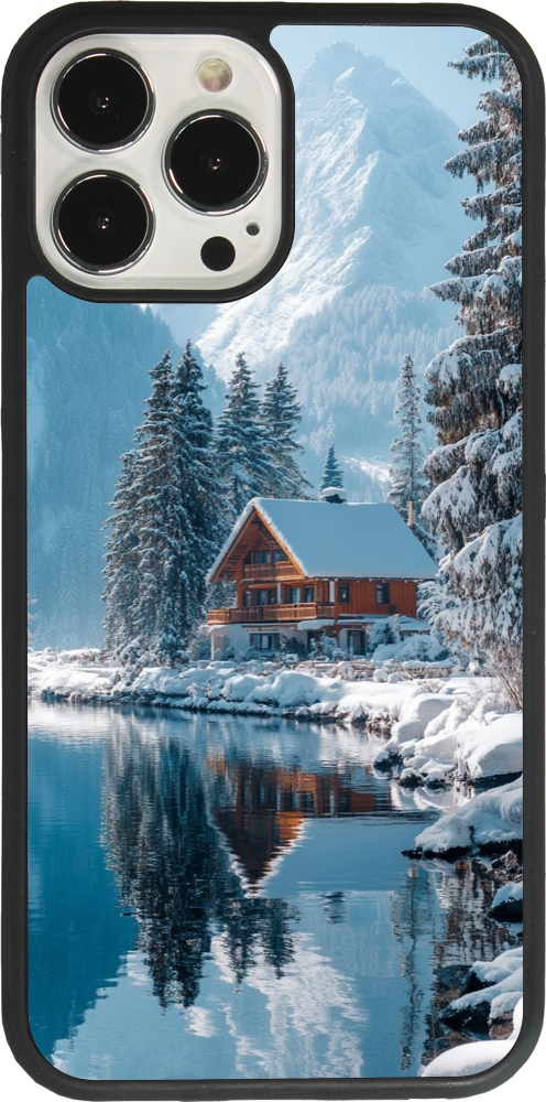 iPhone 13 Pro Max Case Hülle - Silikon schwarz Winter 25 Winter house forest day