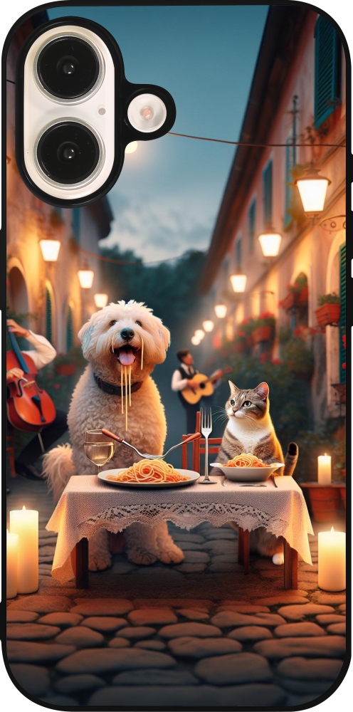 iPhone 16 Case Hülle - Silikon schwarz Valentin 2024 Hund & Katze Kerzenlicht