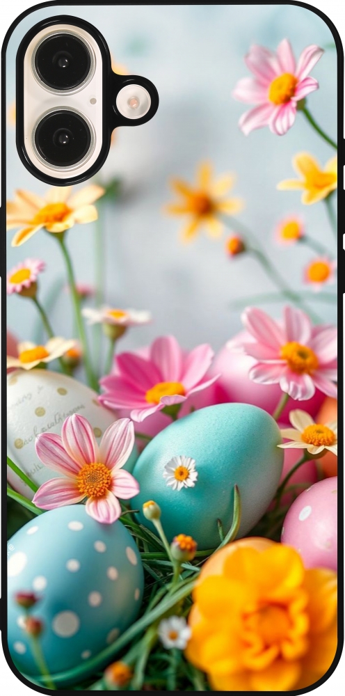 iPhone 16 Plus Case Hülle - Silikon schwarz Easter 2026 Eggs with flowers