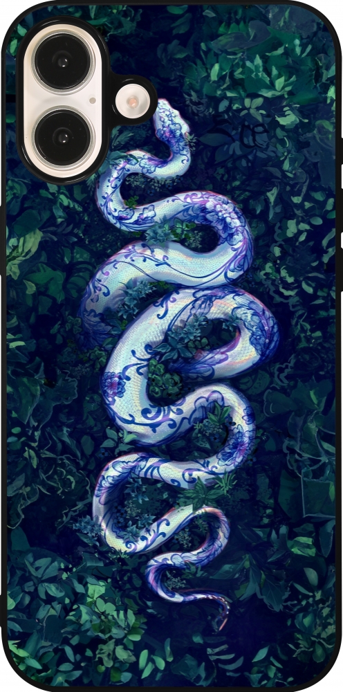 iPhone 16 Plus Case Hülle - Silikon schwarz Snake Blue Anaconda