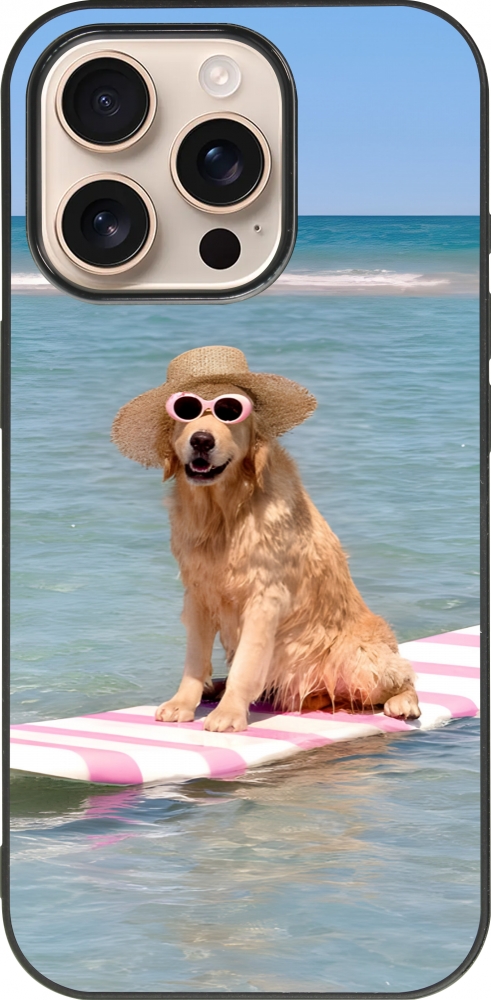 iPhone 16 Pro Case Hülle - Silikon schwarz Summer Dog on Paddle
