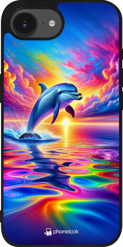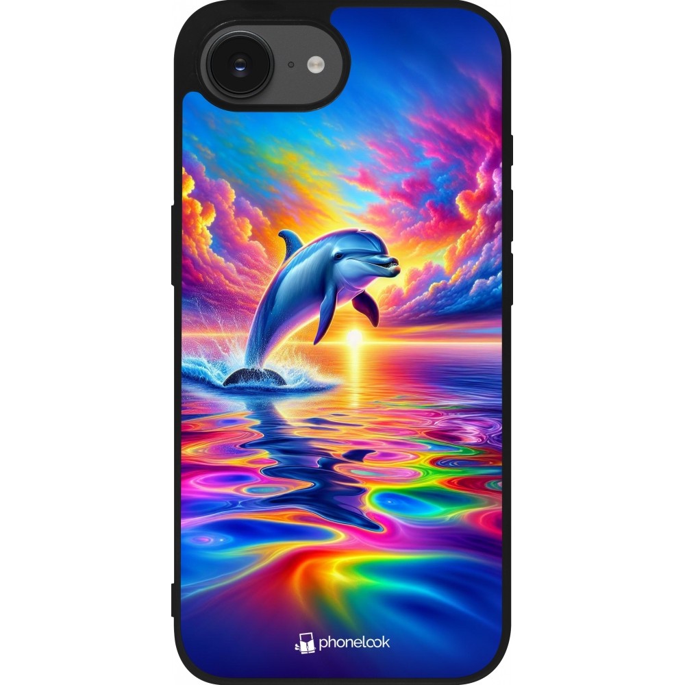iPhone 16e Case Hülle - Silikon schwarz Glücklicher Regenbogen-Delfin