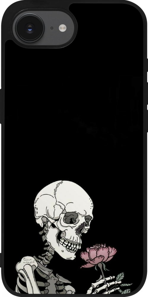 iPhone 16e Case Hülle - Silikon schwarz Halloween 2023 rose and skeleton