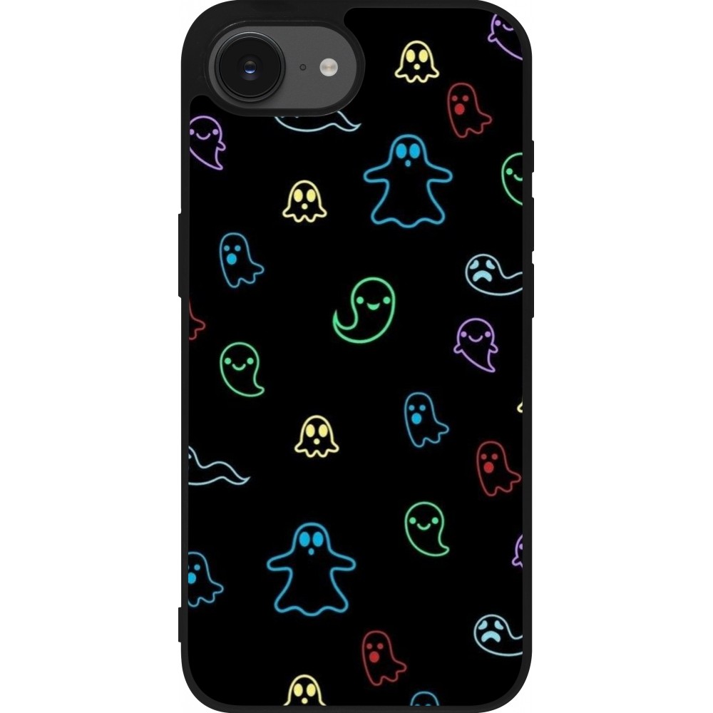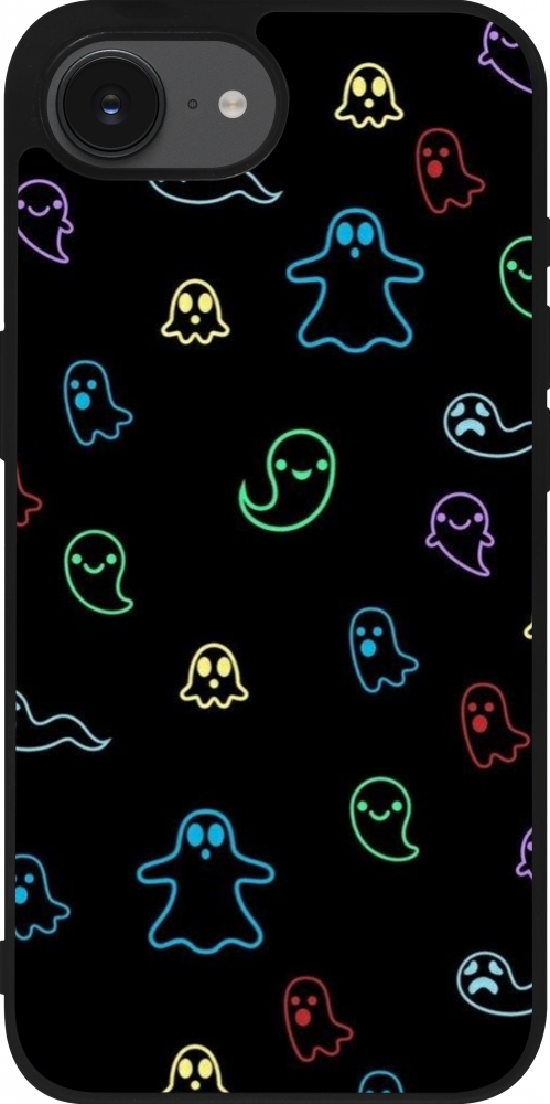 iPhone 16e Case Hülle - Silikon schwarz Halloween 2024 colorful ghosts
