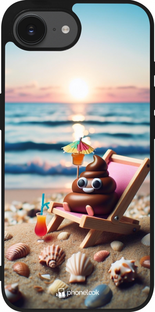 iPhone 16e Case Hülle - Silikon schwarz Kackhaufen Emoji auf Liegestuhl