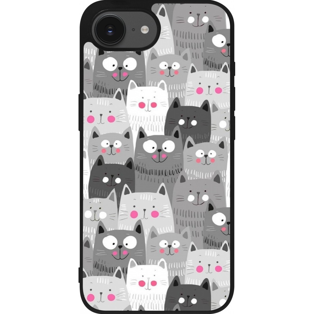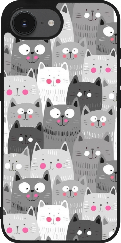 iPhone 16e Case Hülle - Silikon schwarz Katzenschwärme