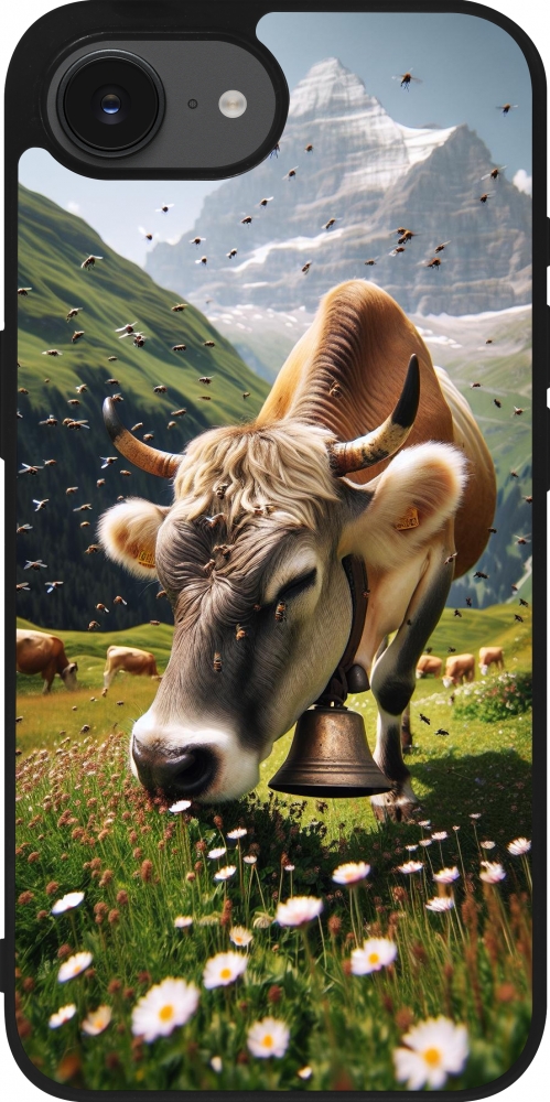 iPhone 16e Case Hülle - Silikon schwarz Kuh Berg Wallis