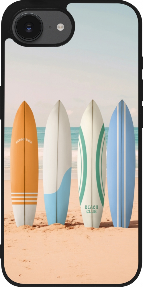 iPhone 16e Case Hülle - Silikon schwarz Summer surfboard 2025