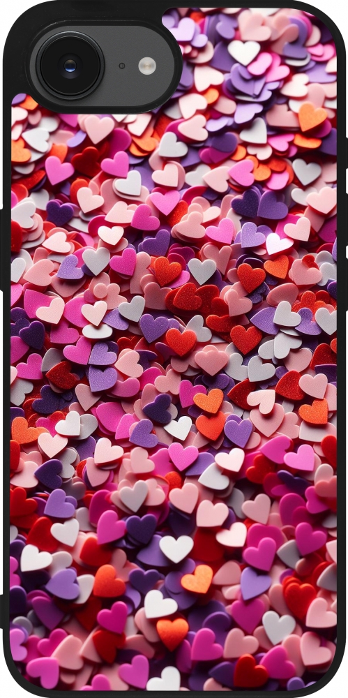 iPhone 16e Case Hülle - Silikon schwarz Valentin 2025 Konfetti