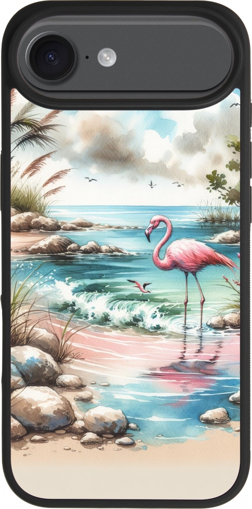 iPhone Air Case Hülle - Silikon schwarz Flamingo Aquarell